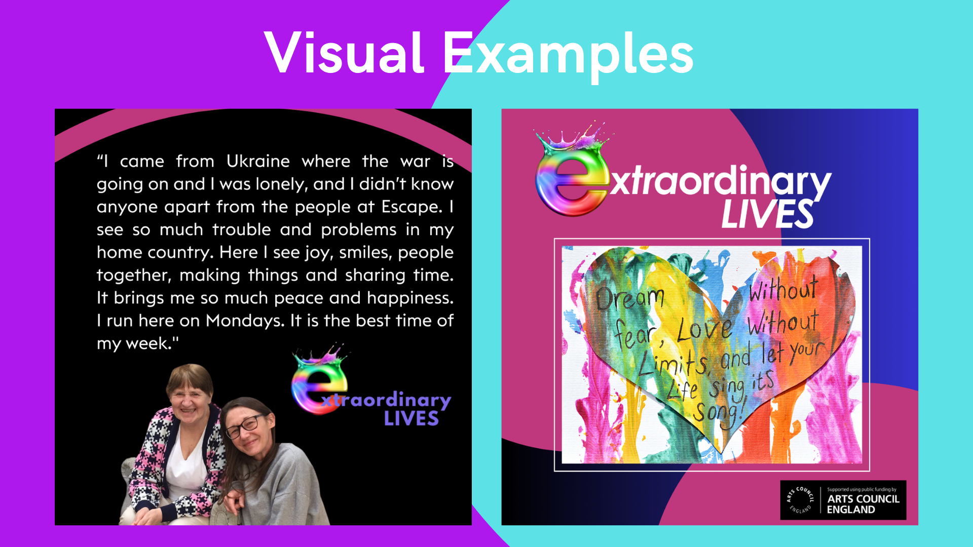 Escape Arts have undertaken a full Risk Assessment for Extraordinary Lives, which can be downloaded here.